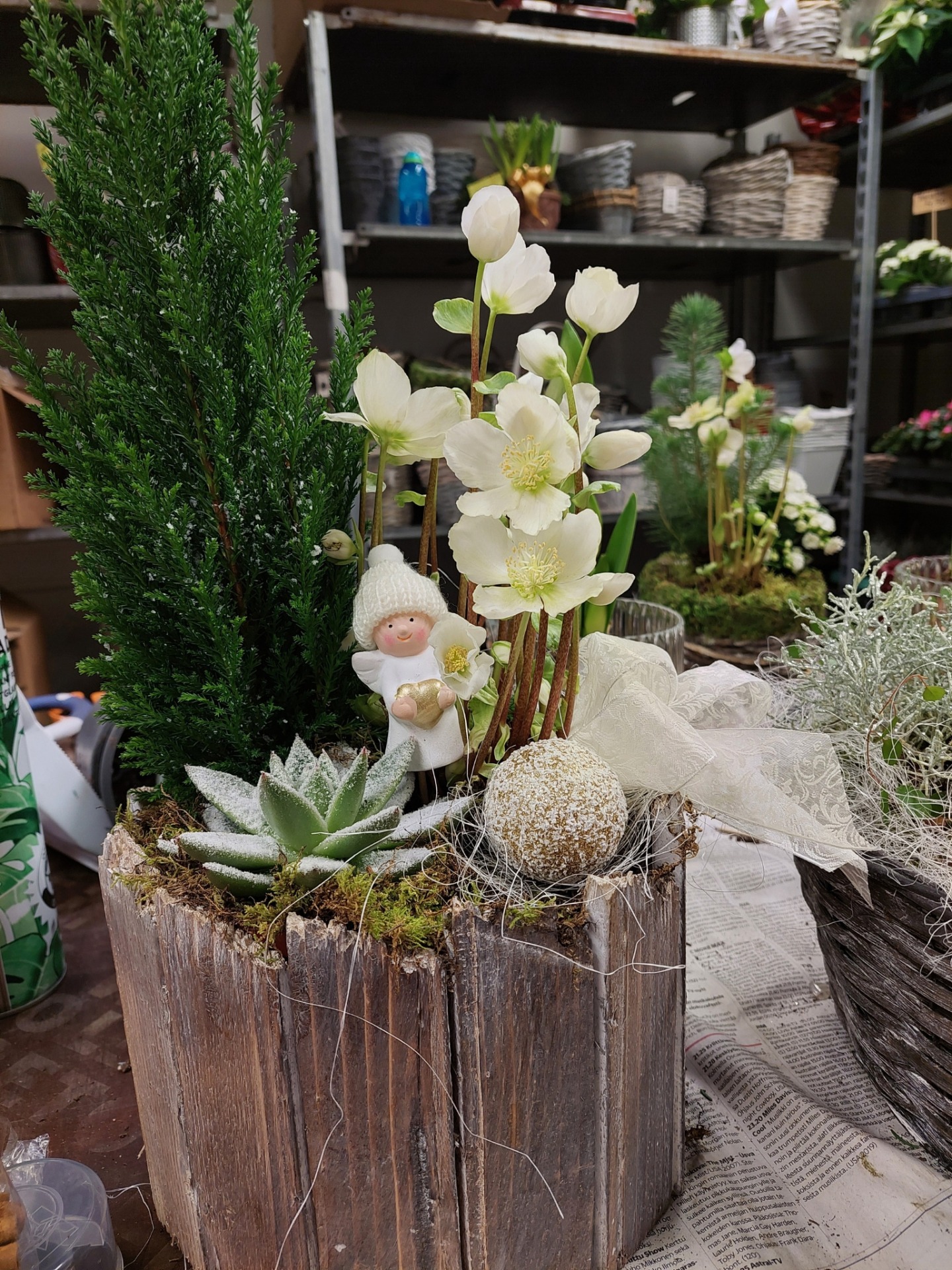 Istutamme joulukorit - ja asetelmat suurimmaksi osaksi itse, jolloin ne ovat ajatuksella tehtyjä ja yksilöllisiä.